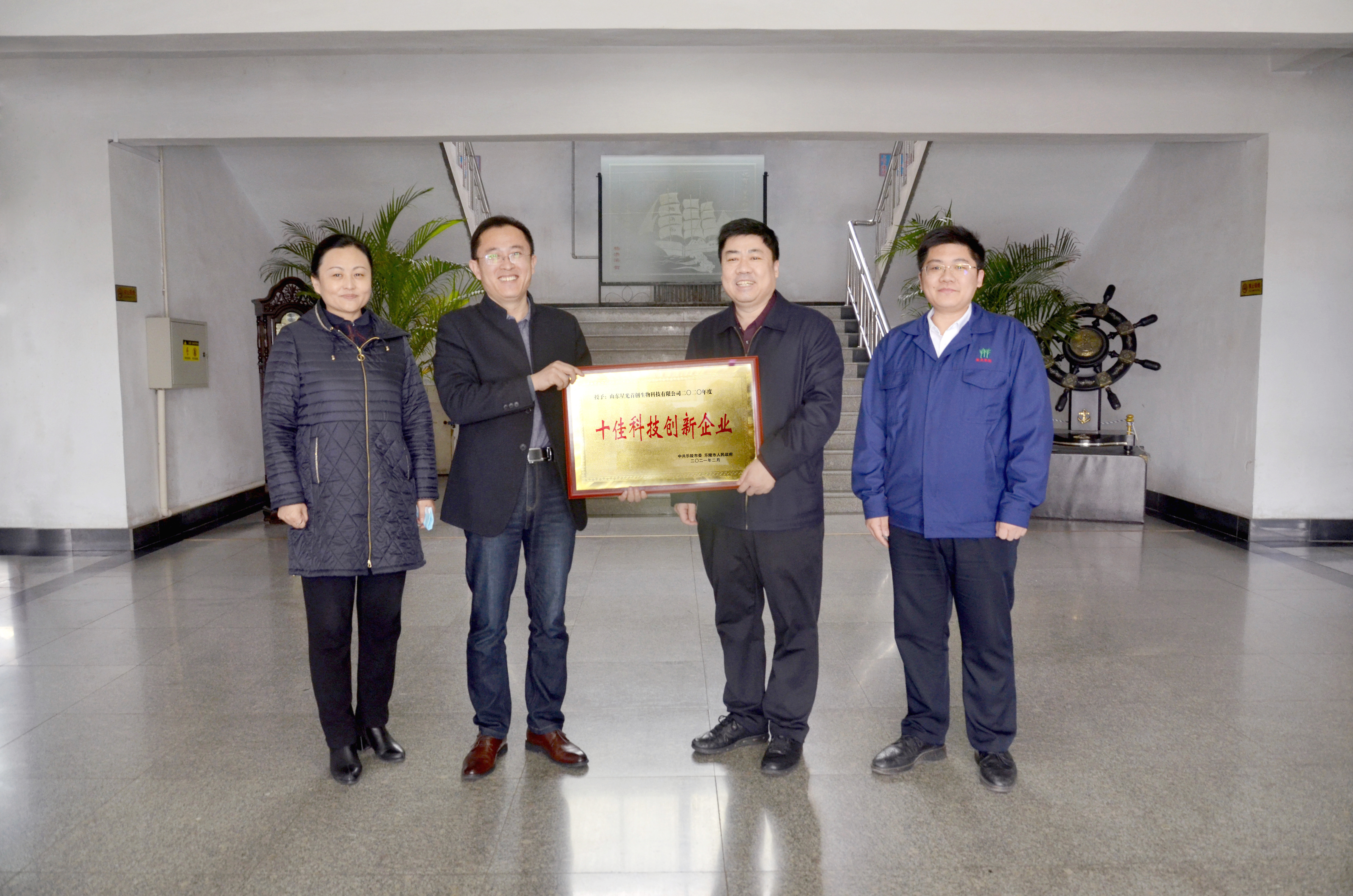 近日,樂陵市開展十個“十佳”企業、企業家評選活動,對本市經濟效益好、創新能力強、社會信譽高的企業給予表彰和激勵,星光首創獲得2個“十佳”榮譽稱號,分別為“十佳科技創新企業、十佳高成長型企業”,總經理曹建幫被評為“十大杰出青年企業家”。2月25日,樂陵市副市長董軍,團市委書記紀阿男依次來企業頒發獎牌、證書,并表示祝賀。